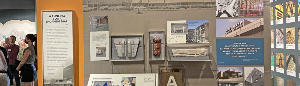 18 years after documenting and salvaging some of the history of a shopping center, it sits in a museum. After all the years of thinking it didn’t matter, it somehow does. Based on comments overheard from people who stopped to look at the Northland wall, it was a “town square” gathering spot. A sense of place is conjured when they look at things as simple as parking reminders or Bakers Shoes’ door handles. Generations of us had this one place in common, and even though it’s gone, a few tangible pieces can bring it back for just a moment.