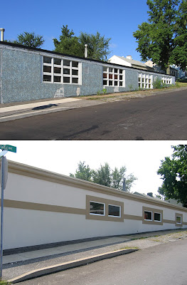 Before: beautiful to the eye of the beholder standing outside (and I bet it looked beautiful inside when the sun beamed through all that glass block), but not always a pleasure to the folks stuck inside on a bitterly cold and windy day in January.