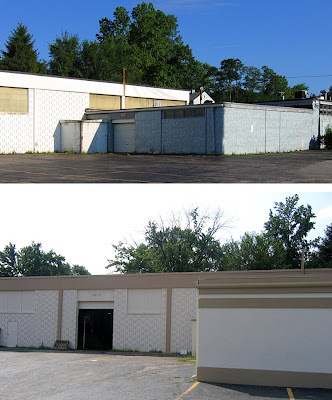 Here’s the secondary front entrance of East Elementary (and note there’s another of those retro trash containers!). Visualize what those silver doors will look like surrounded by large, chunky swatches of brown vinyl. Or maybe they will be kind and simply replace the doors, as well. I’d rather they have consistency than jarring inconsistency.