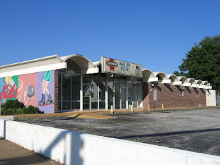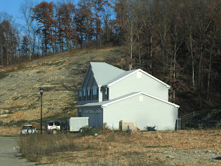 Driving through Town and Country, Missouri, the lopsided sight above is increasingly common. The death vibe hangs over any ranch that rests within sight distance of an overdeveloped profusion of triangle points that are the current rage in new home building. The more McMansions in the area, the greater the chance the ranch is toast, and what does it feel like to live in a Death Row home? Is there a will to survive or a rubbing of hands over the cash-out possibilities?