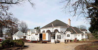 Let’s review the house across the street from Villa Supersize (above). It’s fairly representative of most of the houses in this immediate neighborhood, even of some of the remaining original homes in the general area: low slung and sprawling among the greenery.
