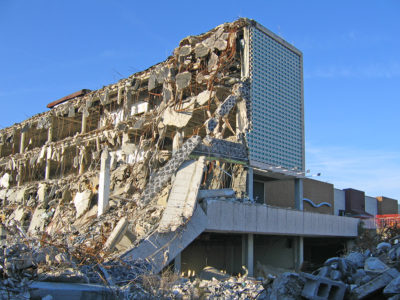 The former Stix, Baer & Fuller building at River Roads Mall in Jennings, MO under demolition in March 2007.