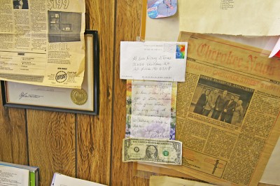 One of Sandy’s favorite mementos is a letter he received in 2008 from someone confessing to having stolen candy from the store when they were 10. They apologized and sent along this dollar to pay for what they took.