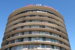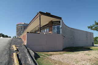 After WW2, North St. Louisans drove out Broadway to the Halls Ferry Circle into North County, which found Hwy 367 building up rapidly with businesses and homes. In the tiny inner-ring suburb of Moline Acres, they built this library in 1963, and right next door in 1964 they built Top of the Towers, which became the hub of everything that was cool, sophisticated and modern. Read more about Top of the Towers here.