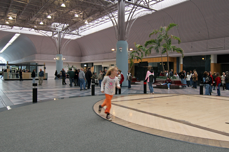Putting a roof over this outdoor plaza was a bad idea from the start; back in the day, I don’t recall a single soul agreeing that this was just what the place needed. But this is what the then-owners felt was necessary to keep up with the Retail Joneses, that shoppers want a hermetically sealed environment more than they want personality and ease of access that comes from open-air malls. With millions of dollars of renovation, they erased the low-slung, mid-century midwest ease that changed with the seasons for a clinical, soulless, Any Town U.S.A. warehouse.