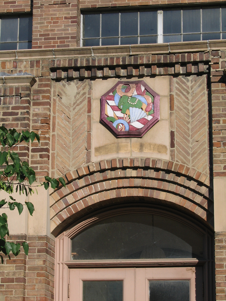 Each time I pass this faded beauty, I have to fight the overwhelming urge to have at the tile with a bucket of Spic & Span and a water hose. Just imagine how those tiles gleam when clean, how this building must have impressed when it first came to the neighborhood. And it could do that once again, but the immediate commercial strip in which this building sits is heading toward the kind of decay that invites future developers to go for Big Box infiltration. Should this ever be the case, the one building that just might save the above gem is…