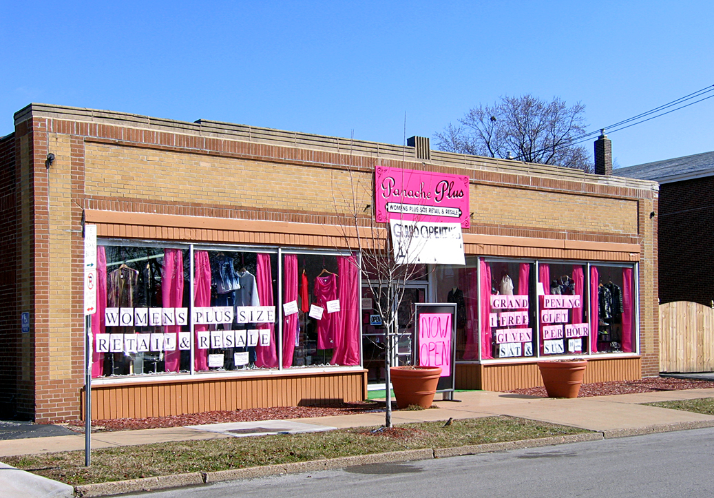 This charming little building was previously a day care, and it didn’t sit vacant for too long. I watched the place getting fixed up by new tenants, and prayed real hard for a coffeehouse. But plus size retail, resale and altering is just as good, and actually more unique and practical than a coffeehouse, especially the resale aspect in a crap economy. So, here’s wishing the best of luck to this small spot of optimism in our neighborhood!