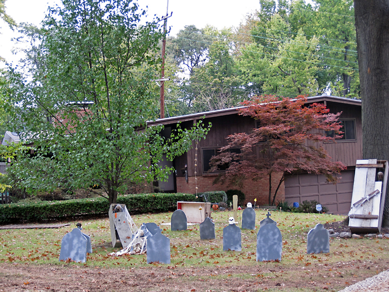 Today, I passed by two different Harris Armstrong houses and both were totally decked out for Halloween.