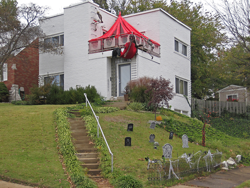 And this one is in South St. Louis City. Loves the skeleton climbing down the ladder on the 2nd-story chimney. If you’d like to see the inside of this home, take the tour here. And have a Happy Harris Halloween!