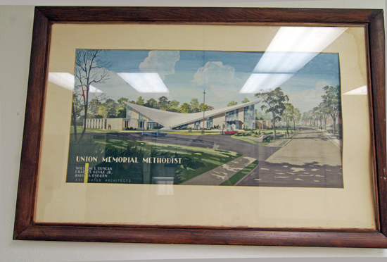 During Dr. John D. Hicks’ pastorate, the city dedicated a mammoth redevelopment program. Union Memorial was located in what was called “The Mill Creek Area”. This area was to be cleared and rebuilt. The church did not have to move, but since many members had moved westward, the church decided to move west, also, and build a new church. A Building Committee of one hundred was appointed, which was empowered to negotiate with the Land Clearance Authority and to take all necessary steps to secure available land. The committee reported that the land and property at Belt and Bartmer was the best that they had found. Two architects were employed to draw up plans which were later accepted.