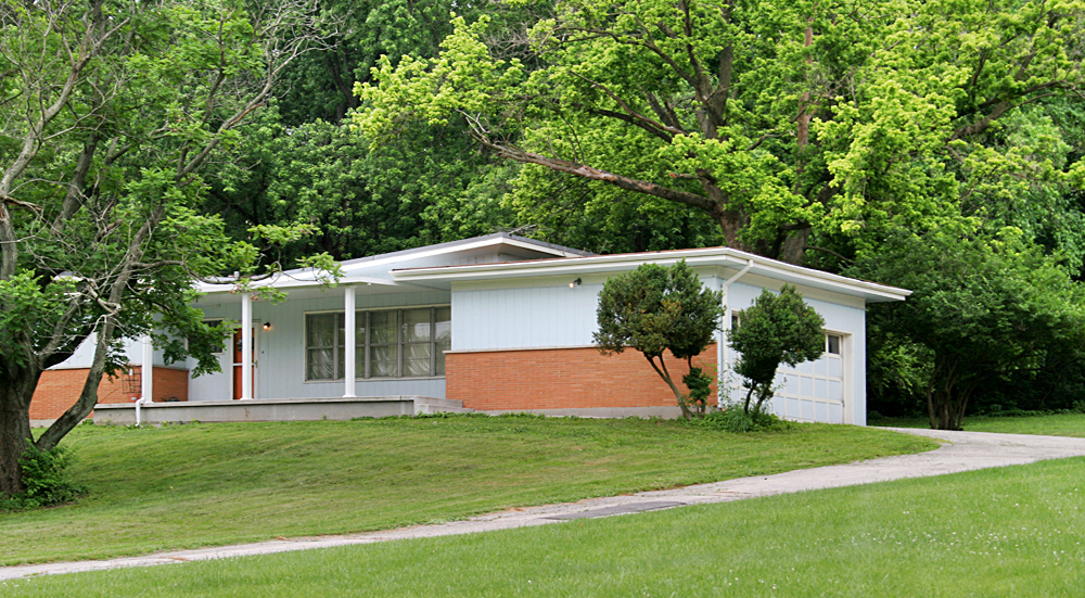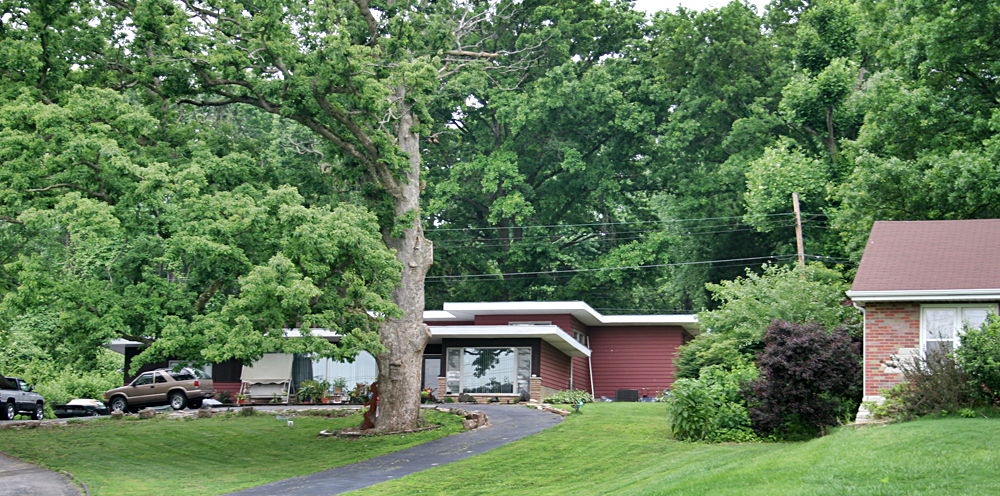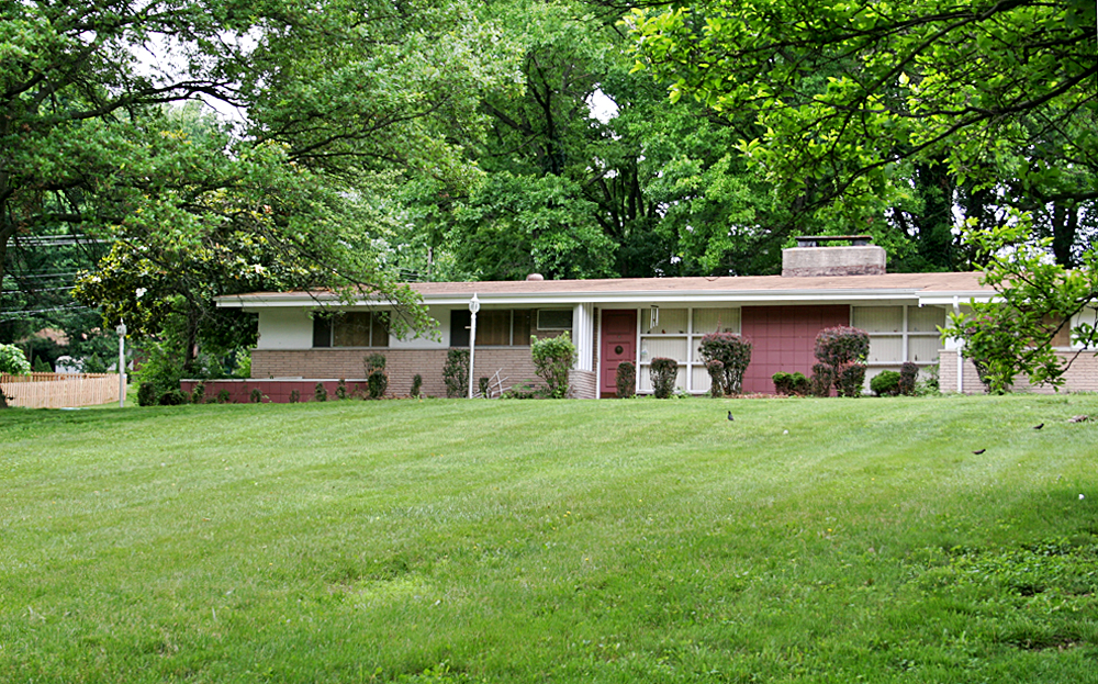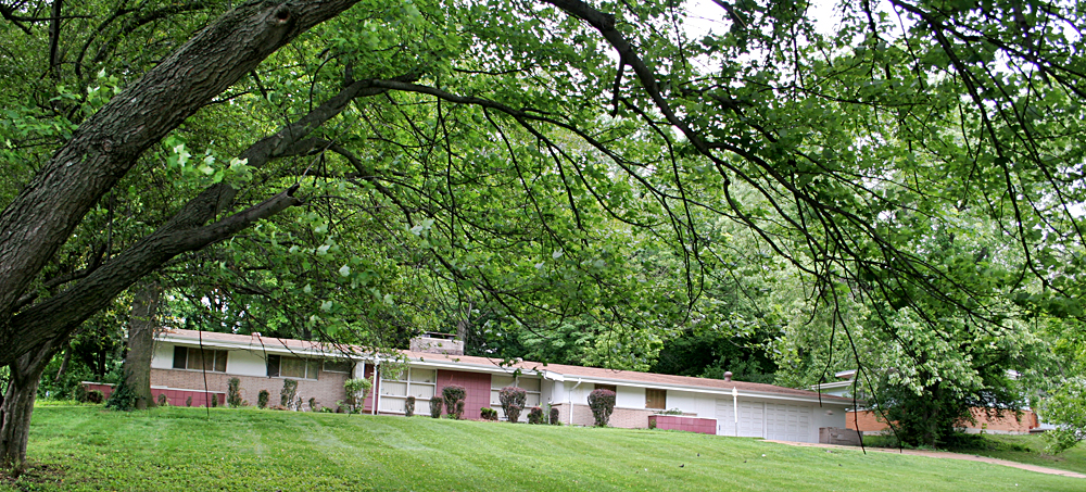 Head north on Halls Ferry Road, and on the western side of the unincorporated portion between Jennings and Dellwood, Missouri you will find a large stash of choice mid-century modern homes tucked into the rolling hills. But stay on Halls Ferry, and pay attention to three homes that straddle Hudson Road, like this one, above.
