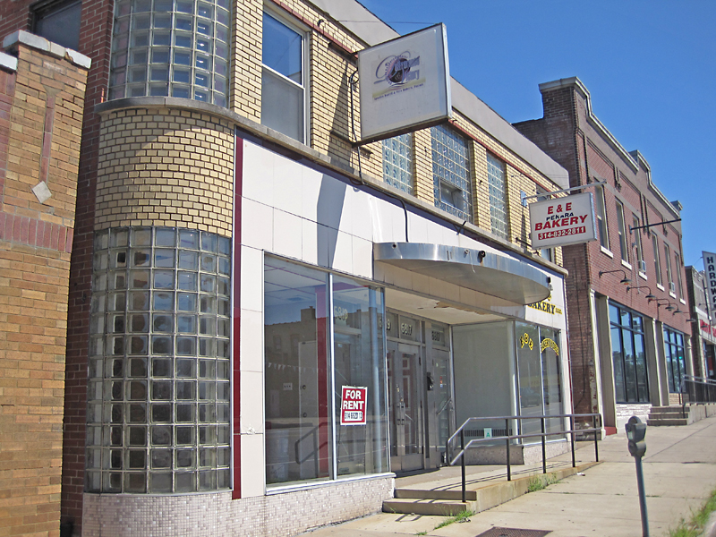 It’s a minor miracle that the original doors have remained in place, and standing next to them always makes me feel all cosmopolitan and clean. Need to do some research to see what was originally in these two separate store fronts (or if you know, do speak up). There’s been a few different business in here since the 1990s, and a Bosnian bakery just only recently closed. Here’s hoping new tenants arrive soon, and that the owners continue to baby this fabulous facade because that is the calling card.