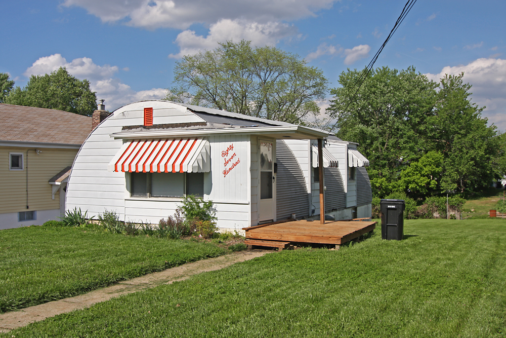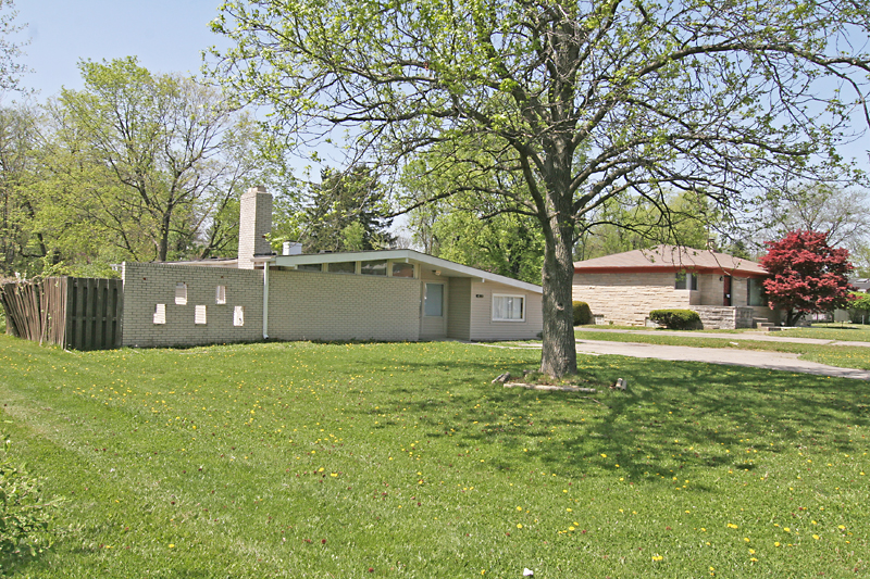 On a sunny and crisp Saturday, we traveled northeast from the heart of downtown Indy to what appears to be a classic mid-American inner ring suburb, and down a street lined with mostly mid-century ranches in various states of decline or renewal. The 3 shown in the photos above are renewing!
