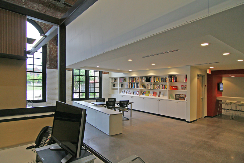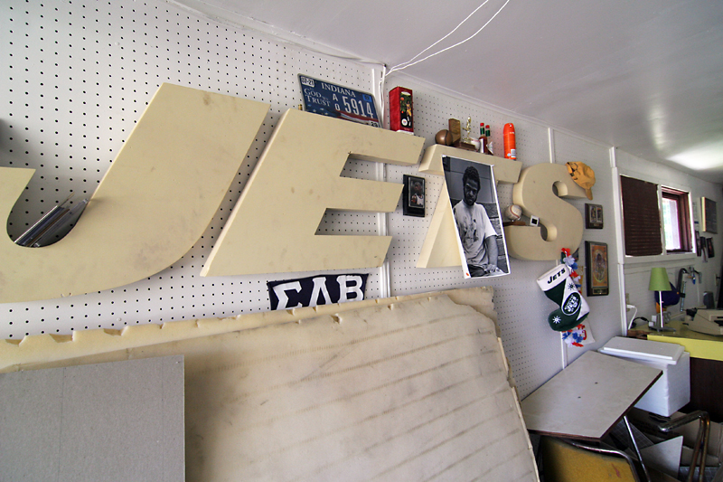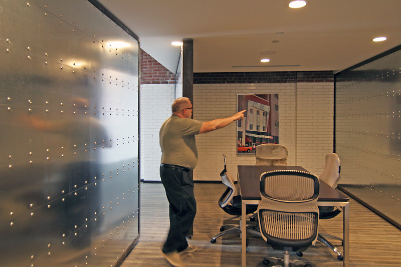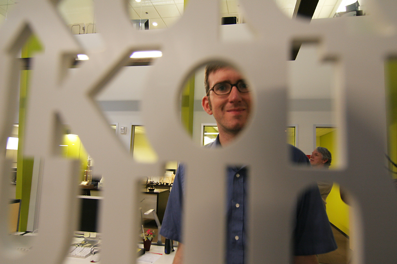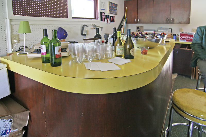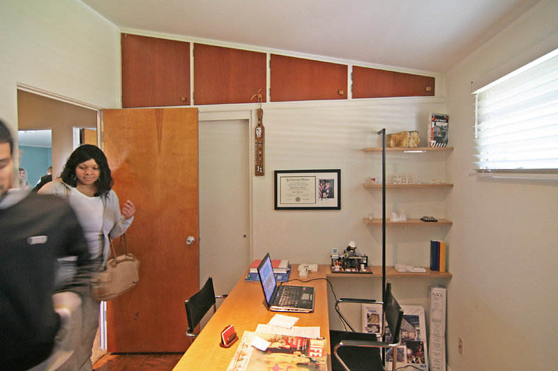 He did the same in his office, completing the installation of this built-in desk the day before the Crash Party.