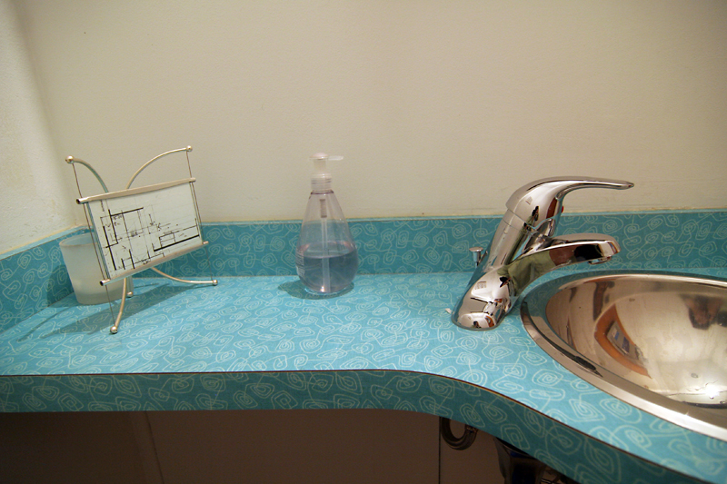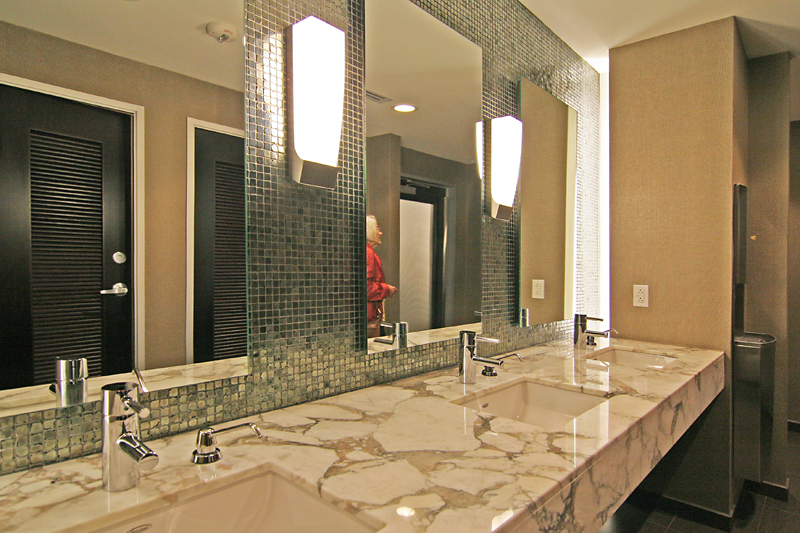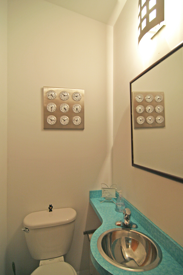 The powder room, above, is a space that appears to have all new fixtures, but it’s become much easier to find laminates and fixtures that mimic the original vintage of the home. Again, rehabbing an atomic ranch is just like rehabbing older homes: restore what you can, or replace with new items that replicate history.