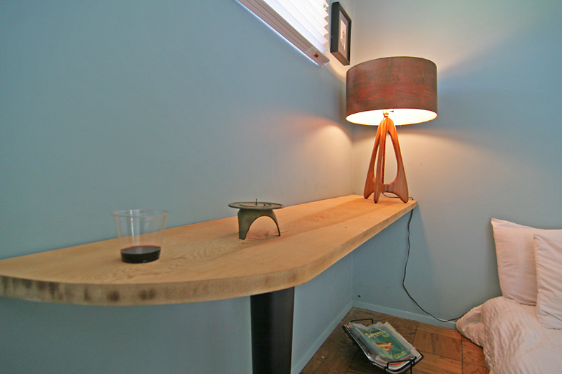 Being an architect, Wil has designed and built several new built-in pieces – like this table in the bedroom – that serves all needs while freeing up square footage.