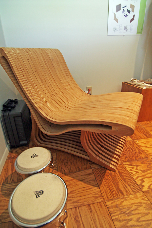 This chair in his office was designed and built by a friend of his. As he promised, it is a surprisingly comfortable piece of fine art.
