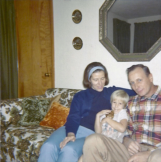 This photo of my mother, father and I shows the closet door and handle is the same, though it – and all the woodwork – received a darker coat of stain over the years.