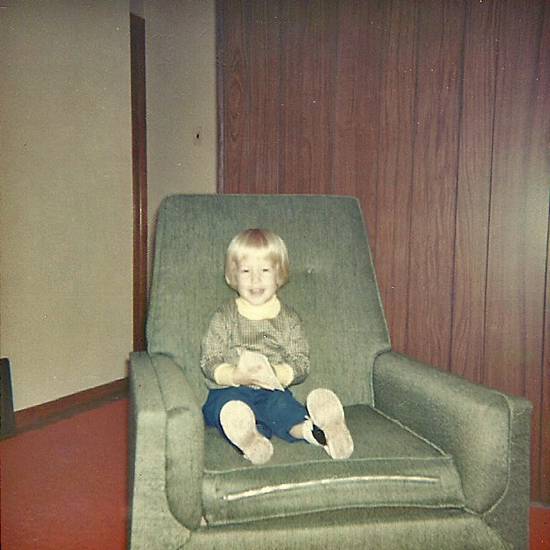 The wall coming down was once the classic, ubiquitous wood paneling. (Side note: I kept that green chair until it literally deteriorated in the mid-90s.)