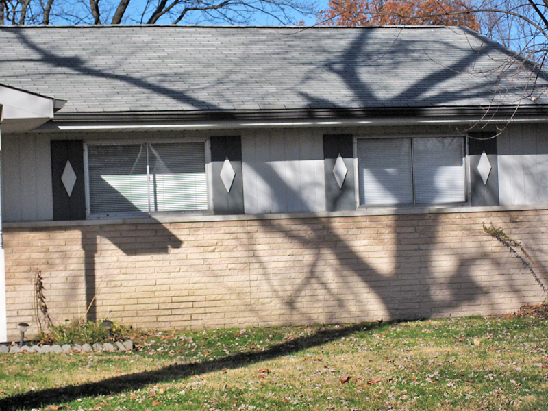 There is a series of ranch homes in the Affton area that have shutters enforced upon them. The original builder inset the windows in a way that created a need for shutters to complete the frame. One can only remove these shutters by investing in larger, custom-size windows to fill the void. Naturally, it’s cheaper to just buy new shutters. So the original financial agreement between the builder and the shutter vendor remains stronger than a homeowners free will to mold the house in their image.
