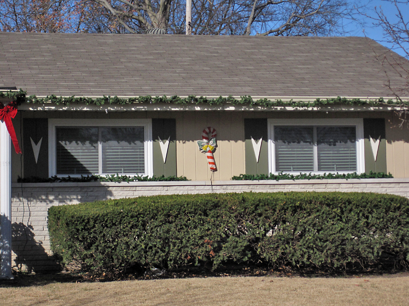 And here’s a good example of comically inappropriate shutters vs. no shutters. Are these homeowners purposely breaking free of the shutter shackles? I’d like to think so, but considering the ramshackle state of the rest of this Webster Groves modern ranch (shutters are hanging loose all over), it appears to be that the house itself is lancing the boils, yearning to return to its original shutterless state.