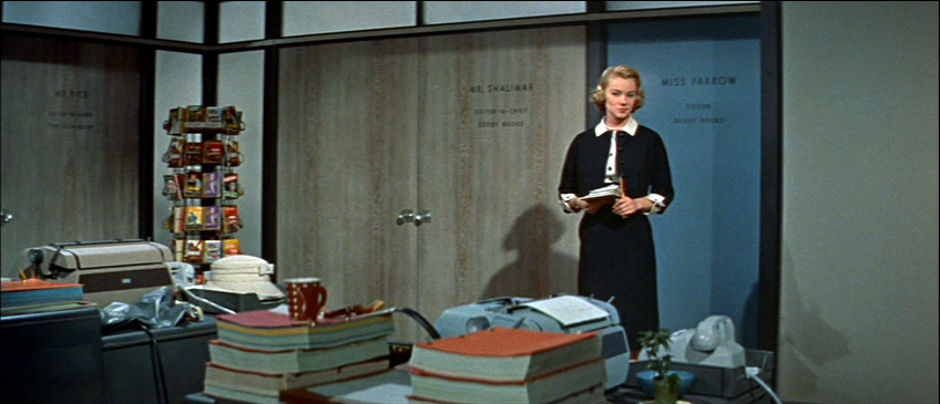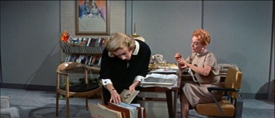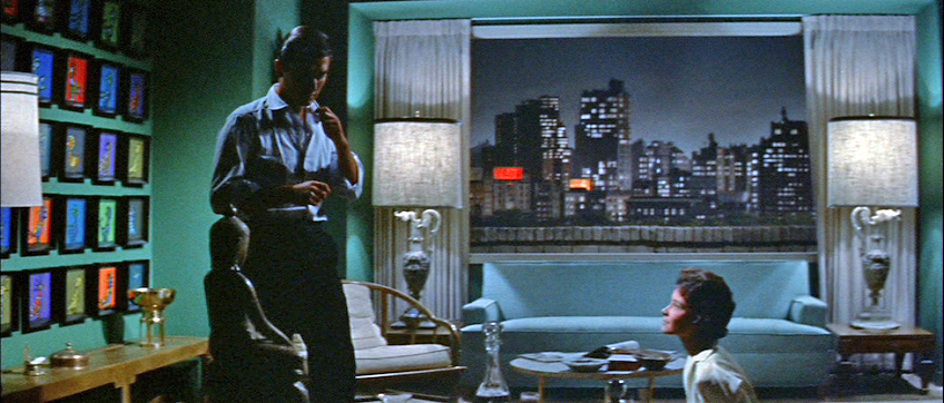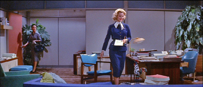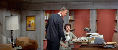 We do get to see a few other character’s places, like the modest home of Jenny Stewart’s mother, or the traditional-tinged-with modern apartment (above) of Tye Graham (played by Elizabeth Taylors’ then-husband Michael Wilding), the blind pianist who riles up Miss Crawford before (spoiler alert) taming the shrew.