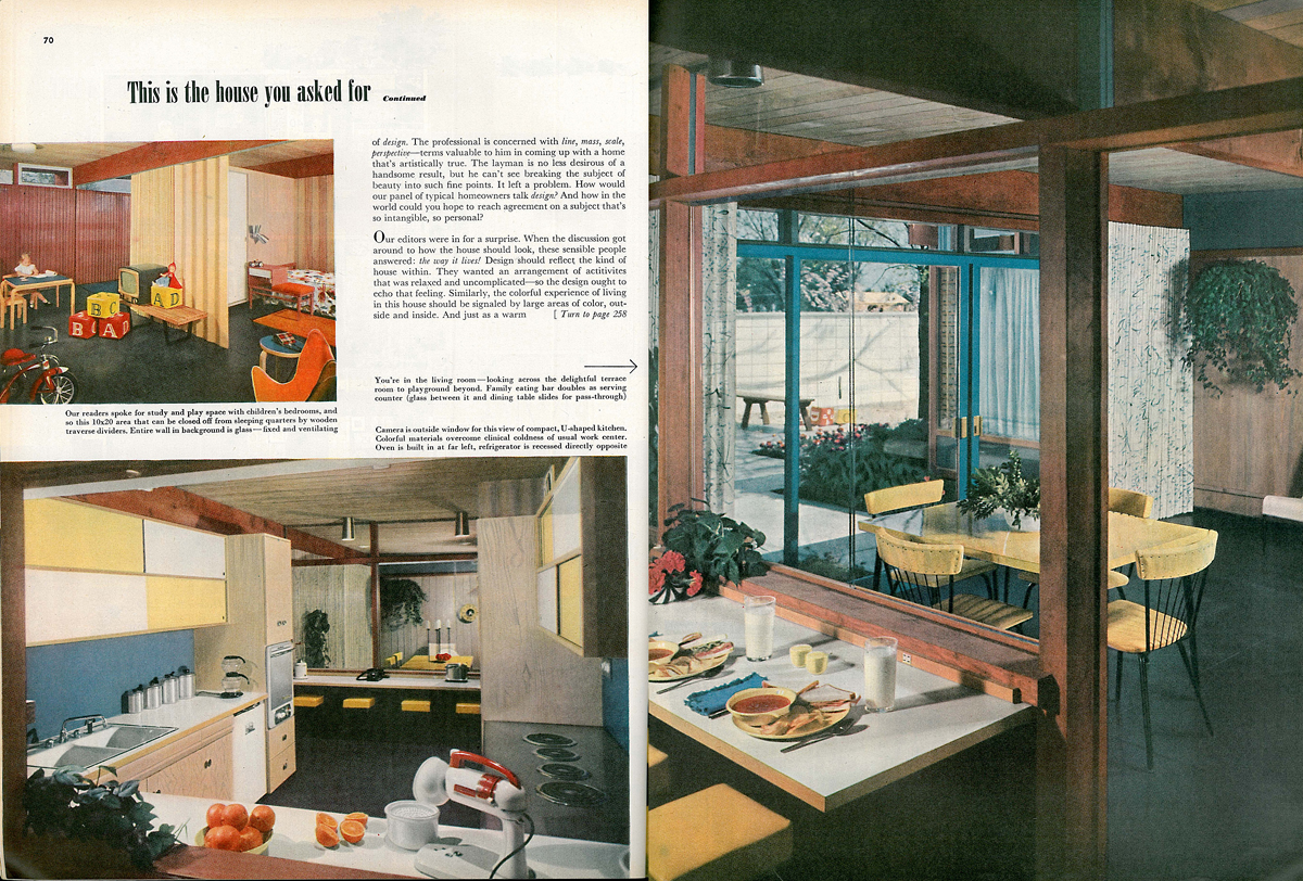 Now you begin to see why this plan was picked to fulfill their panels’ wishes for “the simple desire to live better.” According to the article, one thing all panelists were clear about was that the house should look the way it lives. They also wanted to live on a single level, with one respondent saying she would “not miss running the stairs 20 times a day.”