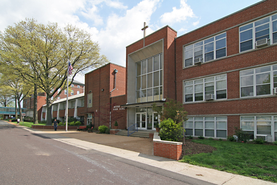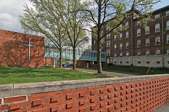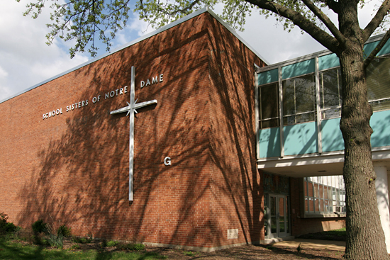 Just a tad north of Jefferson Barracks Historical Park in South St. Louis County, on a bluff overlooking the Mississippi River, is the campus of Notre Dame High School. This all-girl Catholic school is also a fascinating flip book of architectural styles.