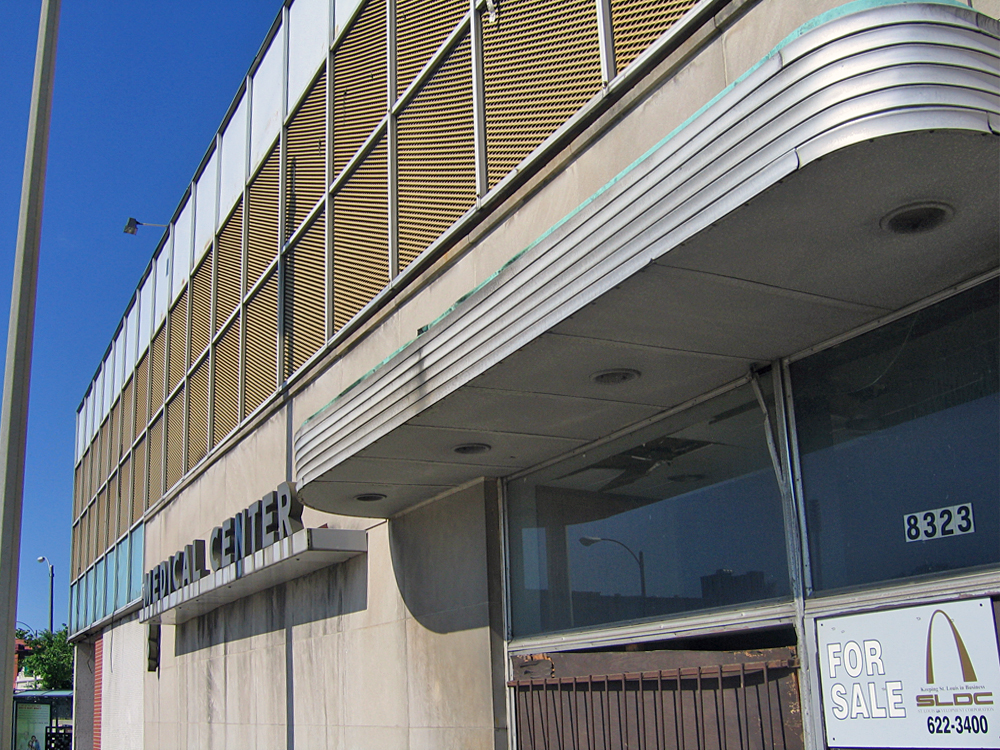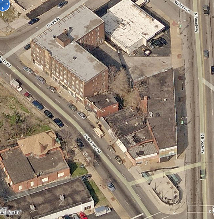 The Y intersection of Halls Ferry & N. Broadway – known as “The Wedge” by locals – was a bit more flexible at changing faces to keep up with the changing times. Driving up the hill on the Halls Ferry side is like time traveling through architectural styles, from newest to oldest.