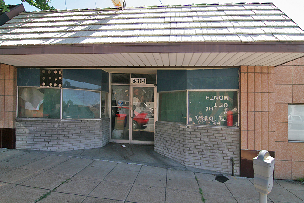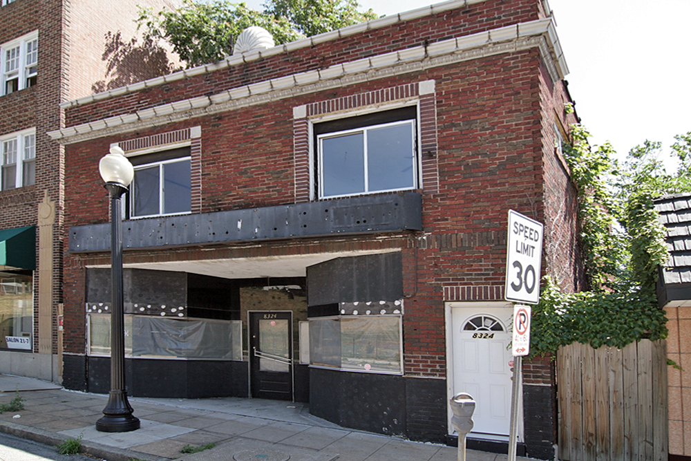 8315 is the portion of this building at the tip of the wedge, which originally housed the Baden Building & Finance Corporation upstairs and Herman Ludwig Drugs at street level. In 1941, Boesel’s Royal Drugs took over the space until closing up shop in 1983. A Dollar Store and a beauty supply went in during the 1980s and 90s, but the entire building has been vacant since the City took it over in 1999.