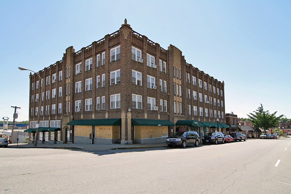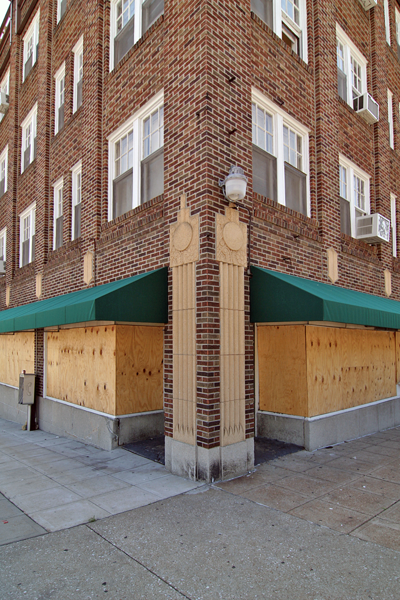 At the end of 2008, all remaining residents were evicted, new owners bought the place for a song in early 2009, and now every entrance and storefront is boarded up.